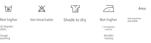 please wash in cold water, do not soak for a long time, do not wash with light-colored clothes, hang in a cool and ventilated place to dry. (Please refer to the washing standard for washing) |